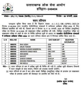 उत्तराखंड में UKPSC की इस भर्ती परीक्षा का रिजल्ट हुआ जारी, सूची संलग्न,,,