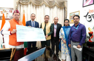 उत्तराखंड में मुख्यमंत्री को केनरा बैंक ने मुख्यमंत्री राहत कोष हेतु 25 लाख रुपये का चेक किया भेंट,,,,,