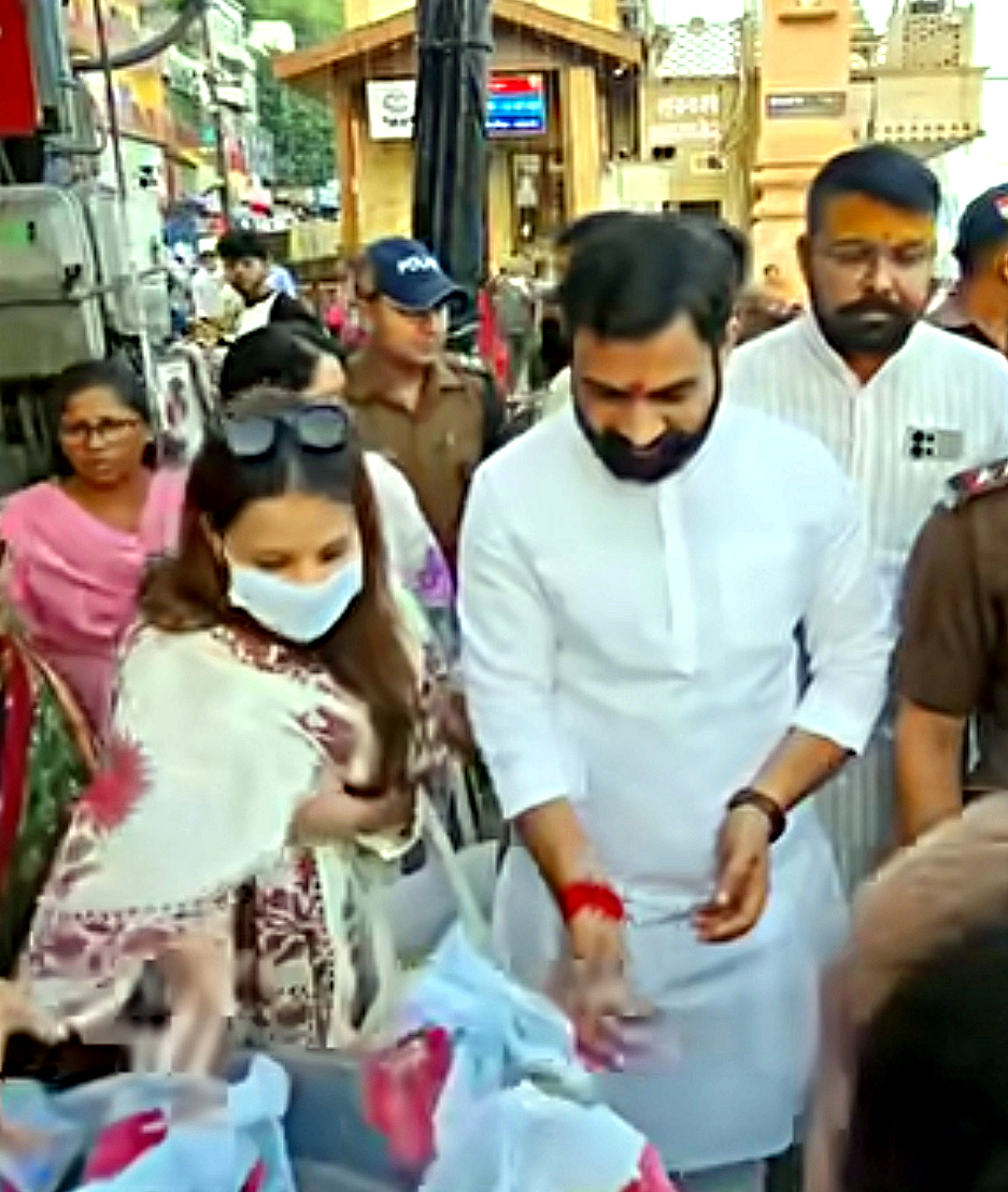 पूजन उपरांत साक्षी धोनी ने श्रीगंगा सभा के पदाधिकारियों से गंगाजली और रुद्राक्ष माला प्रसाद स्वरूप प्राप्त की। इस दौरान उन्होंने श्रद्धालुओं और जरूरतमंदों के बीच स्टॉल लगाकर प्रसाद भी वितरित किया।