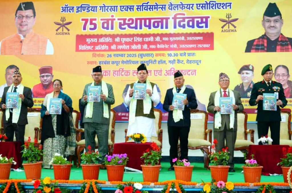 देहरादून: मुख्यमंत्री पुष्कर सिंह धामी ने बुधवार को ऑल इंडिया गोरखा एक्स-सर्विसमेन्स वेलफेयर एसोसिएशन की 75वीं वर्षगांठ के अवसर पर आयोजित कार्यक्रम में प्रतिभाग किया।