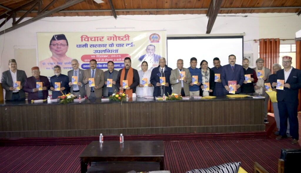 गणित विभाग के ऑडिटोरियम में आयोजित इस गोष्ठी का उद्देश्य पिछले चार वर्षों में हुए विकास कार्यों की समीक्षा, जनकल्याणकारी योजनाओं के प्रभाव का विश्लेषण और भविष्य की प्राथमिकताओं पर विमर्श करना रहा। वक्ताओं ने कहा कि प्रधानमंत्री नरेंद्र मोदी के मार्गदर्शन में मुख्यमंत्री धामी ने केंद्र के साथ बेहतर समन्वय स्थापित करते हुए राज्य को तेजी से आगे बढ़ाया है।