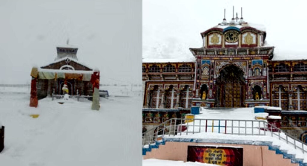 देर रात को बदरीनाथ धाम में बर्फबारी होने से धाम का नजारा मनमोहक बना हुआ है। चारों तरफ की पहाड़ियां भी बर्फ की सफेद चादर ओढे हुए है। बदरीनाथ मंदिर परिसर में भी बर्फ की मोटी परत जमीं हुई है। वहीं गंगोत्री धाम में भी बर्फबारी हुई।