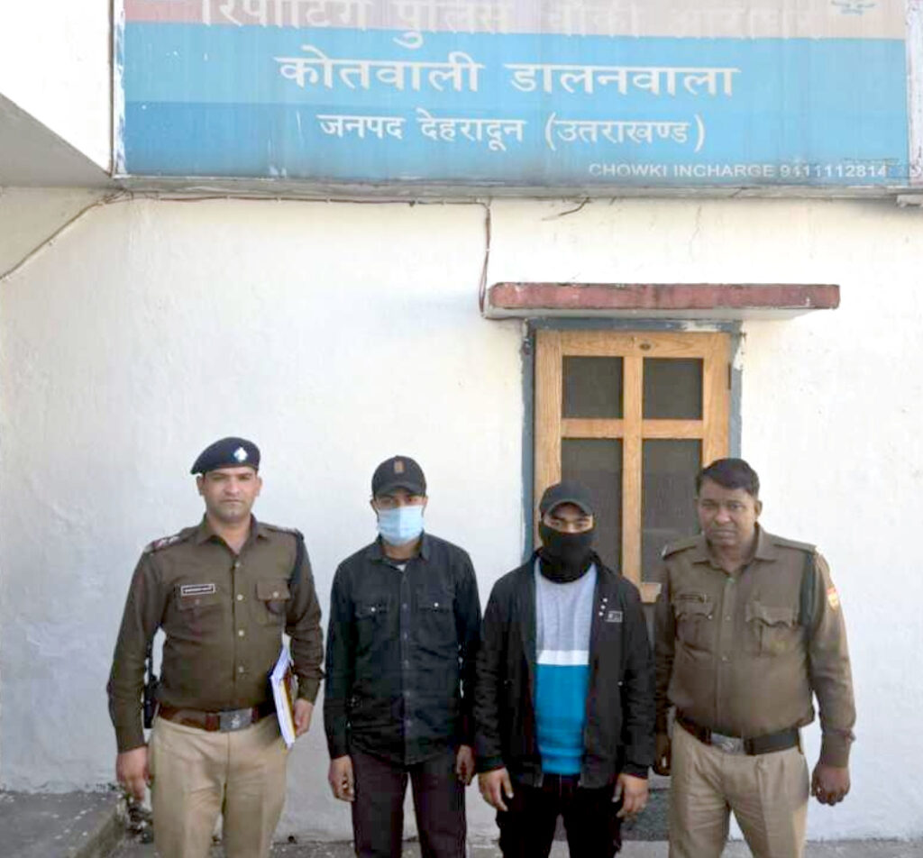 देहरादून: वादी हेम भट्ट स्व० जगदीश चन्द्र भट्ट, निवासी- शान्ति विहार, हरिद्धार बाईपास रोड, देहरादून ने स्कूटी सवार तीन अज्ञात व्यक्तियो द्वारा दिनाँक 06/02/2026 को रेसकोर्स सडक पर मुडते समय उनकी स्कूटी रोककर उनके साथ गाली गलौज, मारपीट व जान से मारने की धमकी देने के संबंध में दी गयी तहरीर के आधार पर मु०अ०सं०- 26/26, धारा 126(2),115 (2),352,351(3) BNS का अभियोग पंजीकृत किया गया, जिसमे पुलिस द्वारा त्वरित कार्यवाही करते हुए दिनांक 07/02/2026 को मुखबिर की सूचना पर घटना में शामिल 02 अभियुक्तो